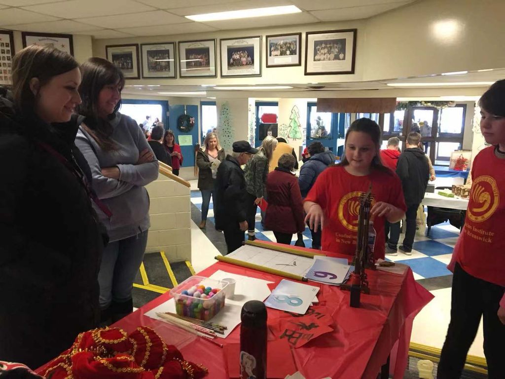 12月1日,新省孔院志愿者梁嘉怡,汉语教师王静丽受邀参加了雷斯特小学一年一度的大型手工艺博览会,为大家带来了一场精彩的中国文化首秀。除在校内展览学生们冬日圣诞主题的中国艺术课作品外,王静丽与4名汉语班学生设立了中国文化展台并演奏《月光下的凤尾竹》。文房四宝、筷子、剪纸、熊猫、“京剧大头照”等吸引人们纷纷前来“一探究竟”。中国舞蹈班的学生们表演了中西结合的串烧舞蹈,东方《星月神话》开场,西方《Panama》结尾,赢得阵阵喝彩。最后的压轴表演梁嘉怡将民族舞与中国太极元素结合,刚柔并济的舞出了一曲《东方神韵》。