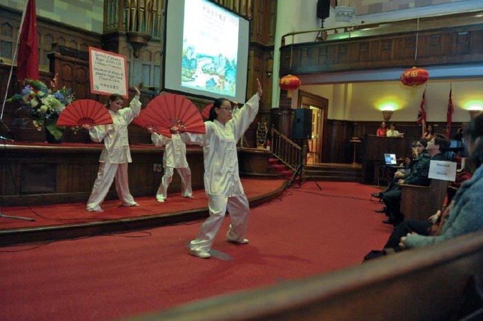 The launch started with a wonderful Chinese traditional lion dances, followed by a Tai-chi Fan performance by Chinese volunteer teacher An Yang and her students. Dr. Roger Lord introduced the recording process of the Chinese Treasures CD in China, expressed his love of Chinese music. Then he played “Autumn Moon over a Clam Lake ", " Liuyang River", "Colorful Clouds Chasing the Moon" and some other pieces of Chinese traditional classic music. His wonderful performance aroused lasting applauses from the audience for many times. After the performance, the audience tasted the Chinese traditional food and bought the CDs, enjoying both physically and spiritually. CBC shot the whole progress and interviewed the Confucius Institute students.