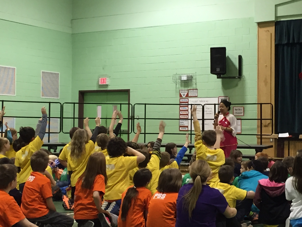 At the beginning of the event, the two MC who are the students in Grade 5 introduced some Chinese typical custom about Chinese New Year. And then Miss Xi and her dance club students performed a Chinese traditional umbrella dance titled <Jasmine Flower> and a handkerchief dance called <La Meizi> which sparked a very joyful atmosphere. The music teacher, Mrs. Wilson led the students perform two songs titled ‘Yangtze River’ and ‘Feng Yang Song’. Both of them were about Chinese culture. The highlight of the show came from Mr. Fazhou Fei, the Kung Fu Teacher of CINB, who performed Tai Ji sword and won a warm applause and cheers. Also, he was joined by Mme. Aube and a group of Park Street Students performed <Tai Ji> which had been performed in the Play House for Chinese New Year Gala of Fredericton.